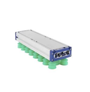 本抓手采用大面积吸盘设计,专为抓取大型平板类物料而研发,如水桶、钢板、玻璃等。与普通吸盘抓手相比,它对物体表面平整度要求更高,能够实现稳定、高效的吸附搬运,确保大型物料在起吊、转运过程中不易滑动或倾斜。其结构稳固、吸力强劲,适用于工业生产线上对大型平板物料的自动化搬运和码垛作业,显著提升搬运效率与作业安全性。